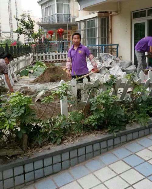 前花園地面找平中
